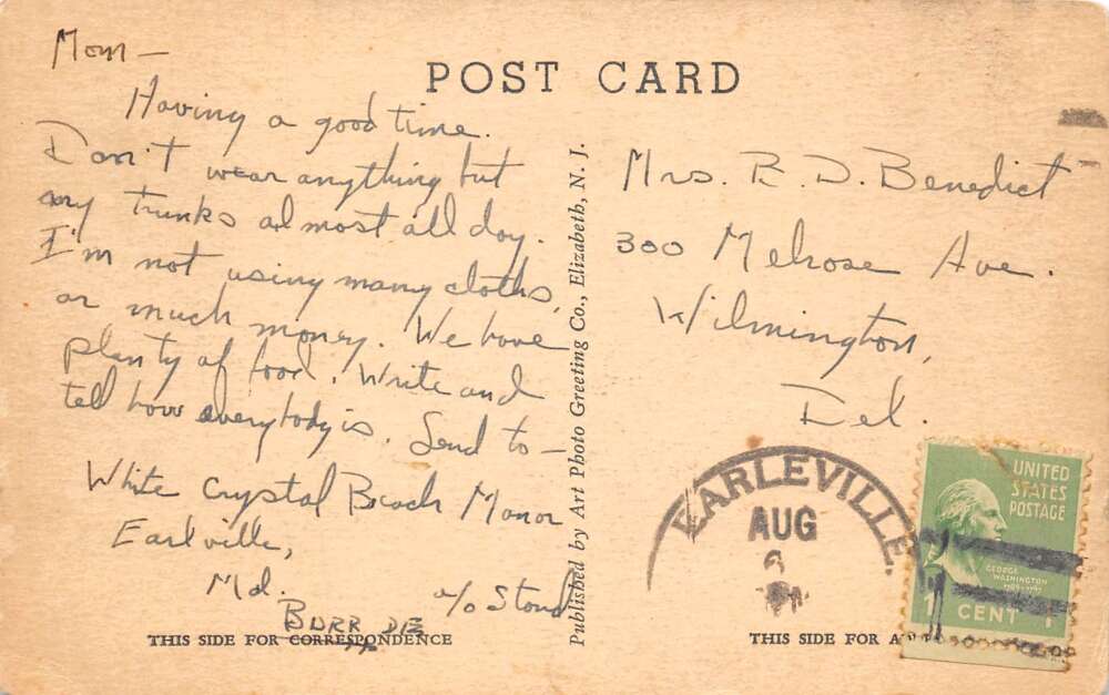 Earleville Maryland White Crystal Beach The Grove Vintage Postcard AA103022