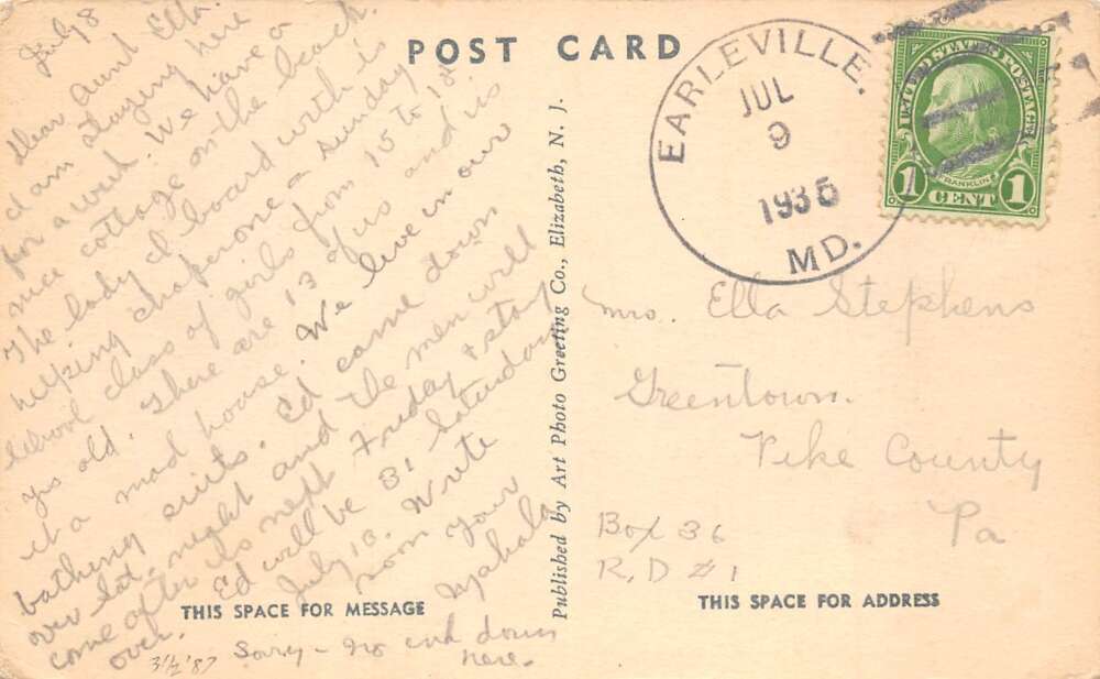 Earlville Maryland White Crystal Beach Bath House Vintage Postcard AA104293