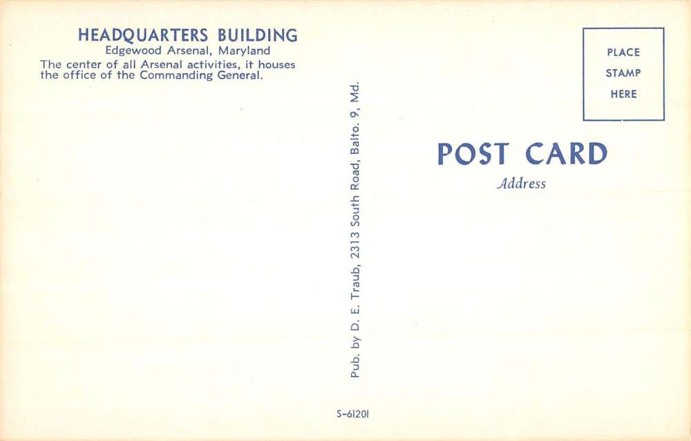 Edgewood Arsenal Maryland Headquarters Street View Vintage Postcard K90254