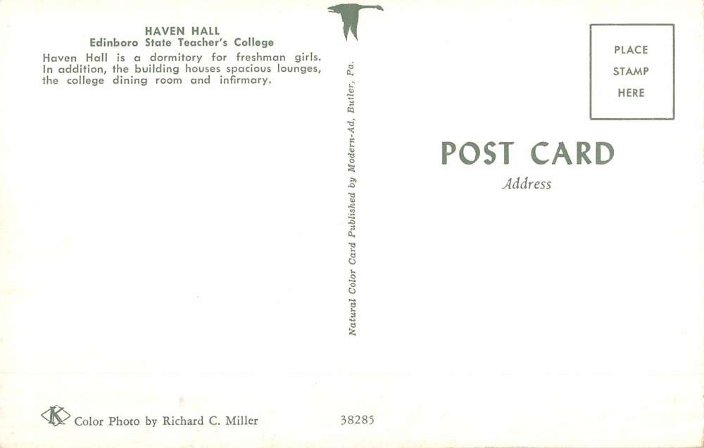Edinboro Pennsylvania State Teachers College Haven Hall Antique Postcard K67323