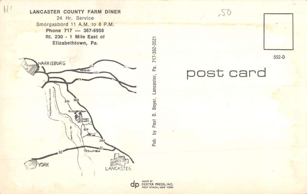 Elizabethtown Pennsylvania Lancaster Farm Diner Vintage Postcard K89842