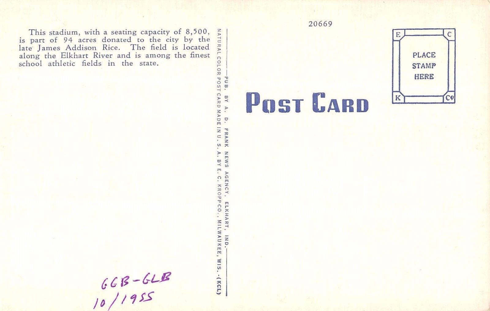 Elkhart Indiana High School Rice Athletic Field River Antique Postcard (K2327). Good condition. Slightly worn edges.