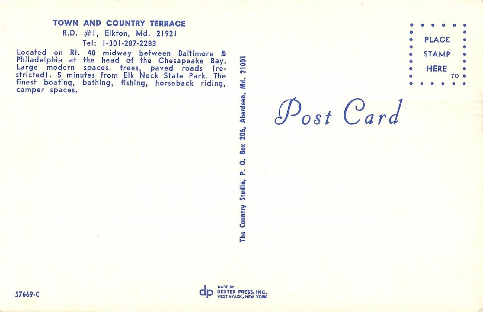Elkton Maryland bird’s eye view Town and Country Terrace vintage pc (Y10092). Good condition – has not been used.
