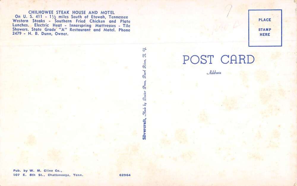 Etowah Tennessee Chilhowee Steak House and Motel Vintage Postcard AA37511