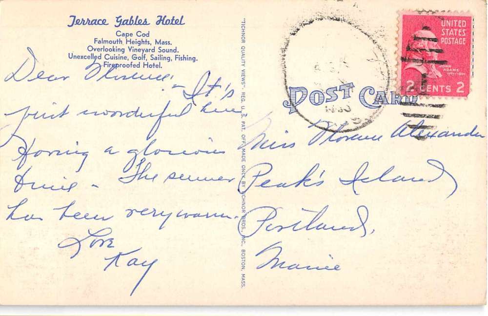 Falmouth Heights Massachusetts Terrace Gables Hotel Antique Postcard J54040