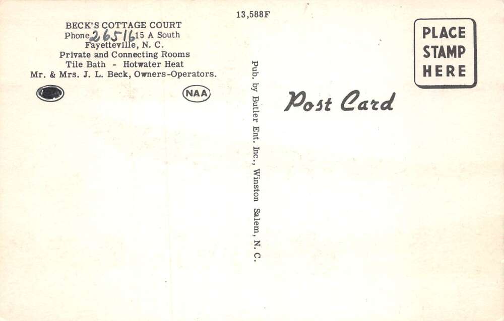 Fayetteville North Carolina Beck’s Cottage Court Vintage Postcard AA71774