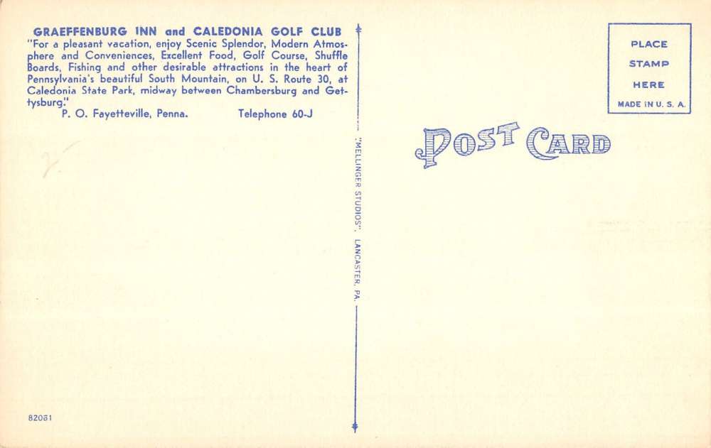 Fayetteville Pennsylvania Graeffenburg Inn Dining Room Antique Postcard K38620
