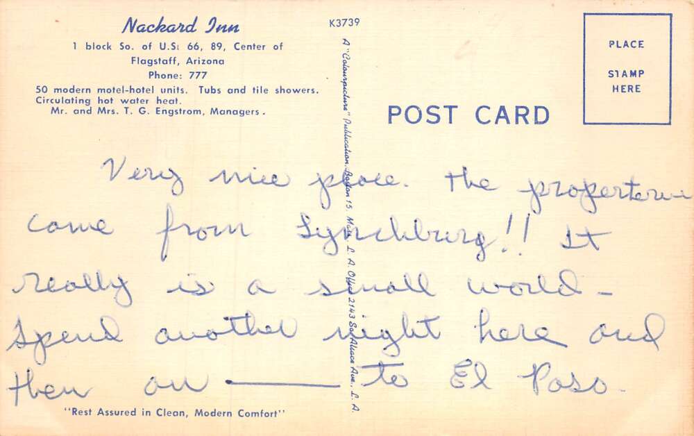 Flagstaff Arizona Nackard Inn Vintage Postcard AA58994