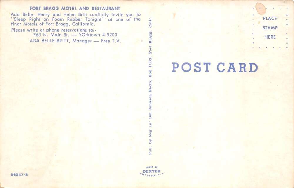 Fort Bragg California Fort Bragg Motel and Restaurant Vintage Postcard AA104345