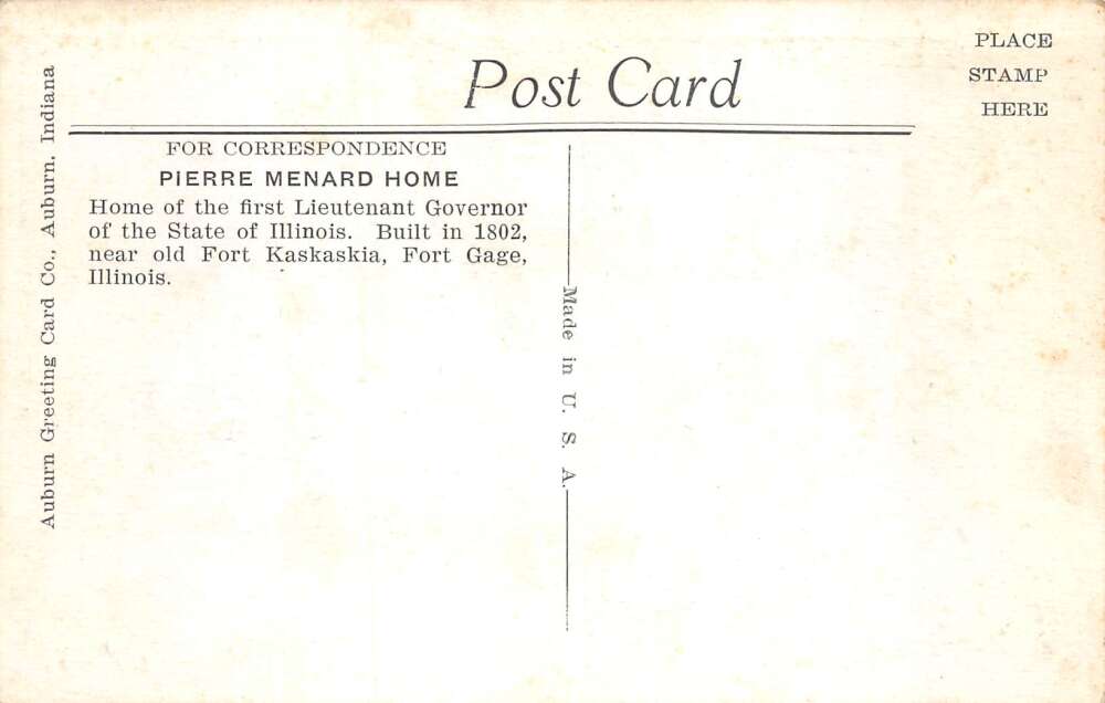 Fort Gage Illinois Pierre Menard Home Vintage Postcard AA109463