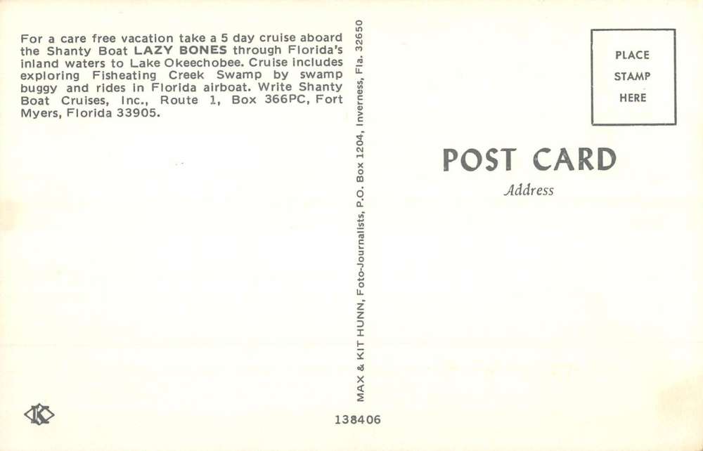 Fort Myers Beach Florida Lazy Bones Shanty Boat Vintage Postcard K85250