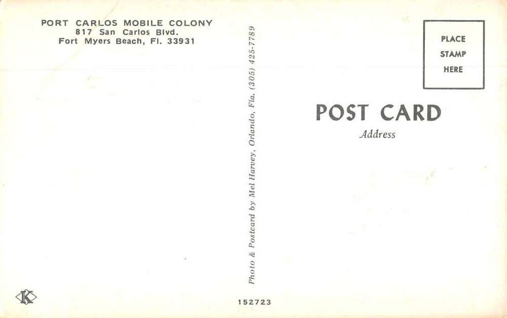 Fort Myers Beach Florida Port Carlos Mobile Colony Vintage Postcard JE359602