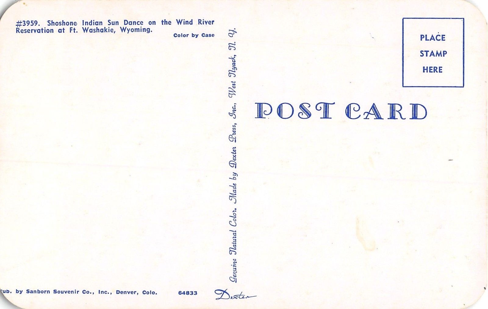Fort Washakie Wyoming Shoeshone Indian Sun Dance Vintage Postcard (J15648) Good Condition.