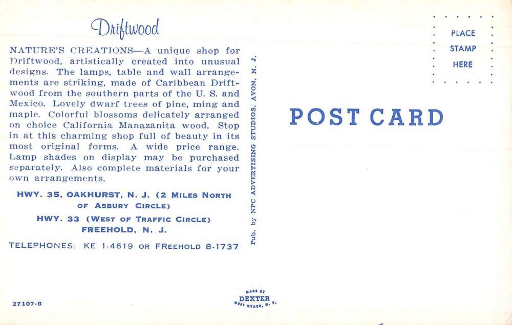 Freehold New Jersey Driftwood Store Interior Vintage Postcard K90365