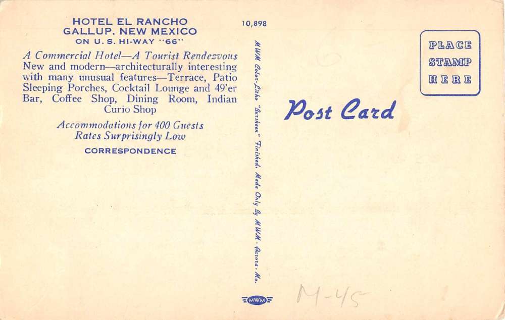 Gallup New Mexico birds eye view Hotel EL Rancho linen antique pc Z28306