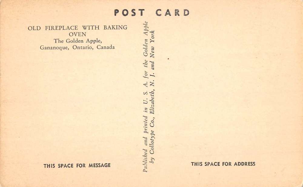 Gananoque Ontario Canada Golden Apple Old Fireplace Antique Postcard K94525