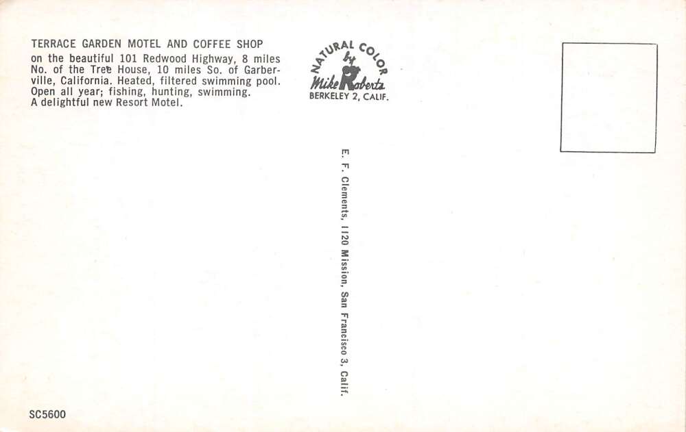 Garberville California Terrace Garden Motel, Chrome, Vintage Postcard U18927