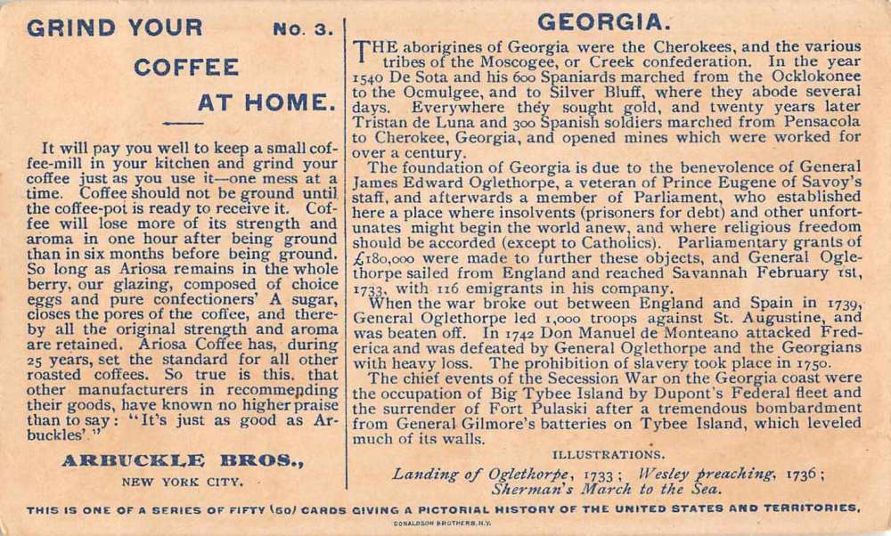 Georgia Battle Scene Military Ariosa Coffee Ad Antique Trade Card J57649