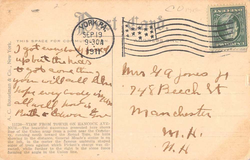 Gettsyburg Pennsylvania Hancock Ave View From Tower Antique Postcard K84015