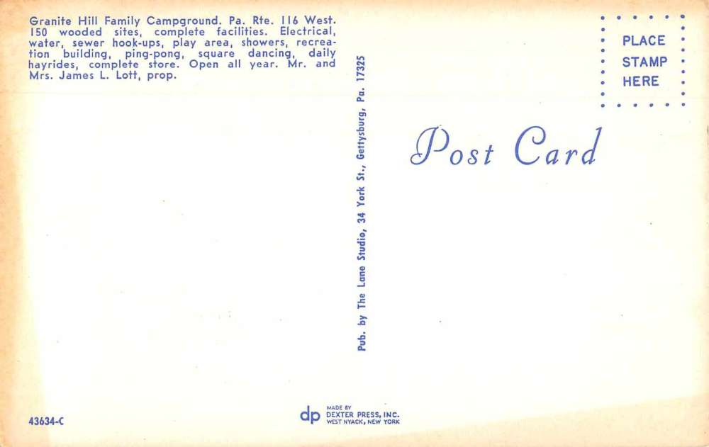 Gettysburg Pennsylvania Granite Hill Family Campground Vintage Postcard J70745