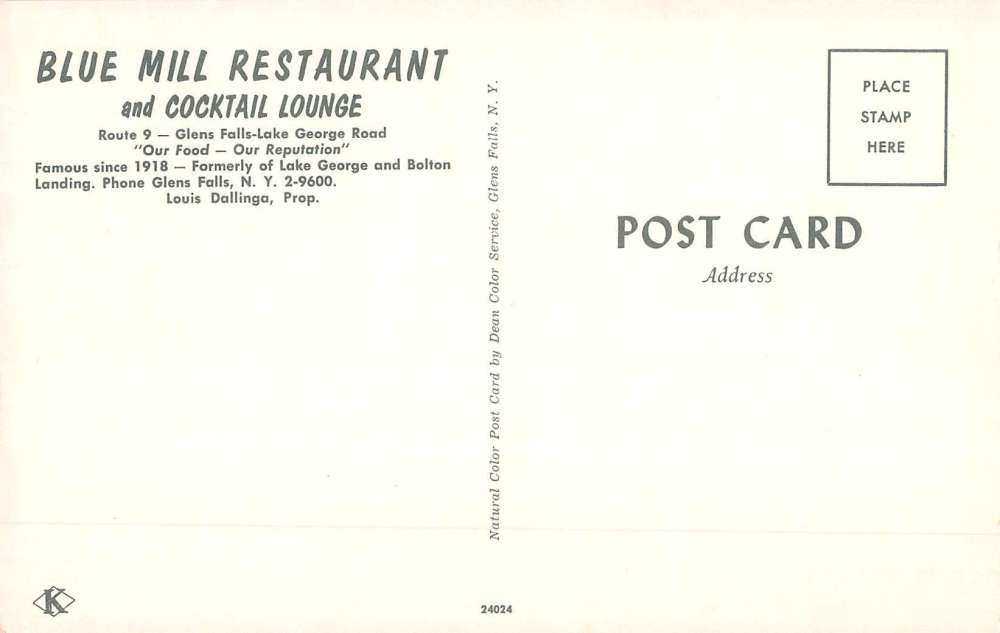 Glens Falls New York Blue Mill Restaurant Street View Vintage Postcard K65192