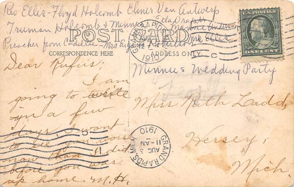 Grand Rapids Michigan Wedding Party Scene Real Photo Vintage Postcard AA72358