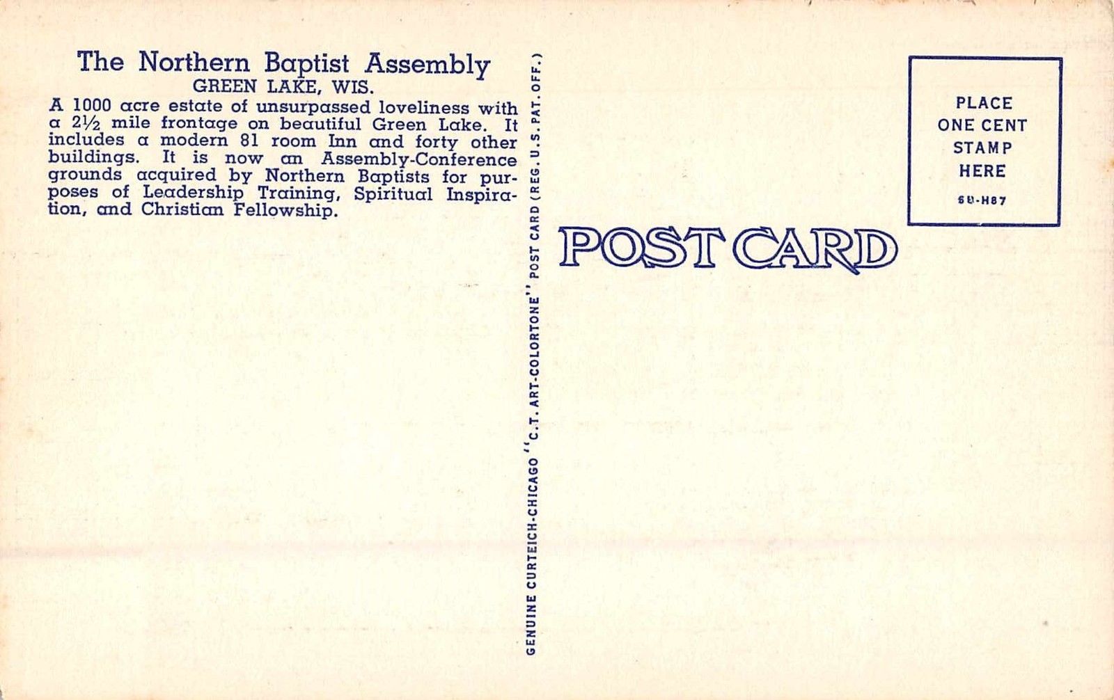 Green Lake Wisconsin Northern Baptist Assembly attendees linen antique pc Y9879. Good condition – has not been used.