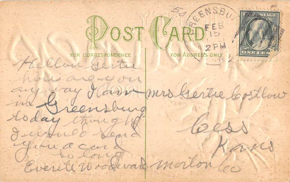 Greensburg Kansas Flower Hearty Greeting Antique Postcard K80535
