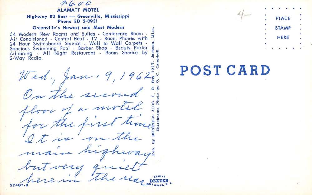 Greenville Mississippi Alamatt Motel Multiview Vintage Postcard K41713