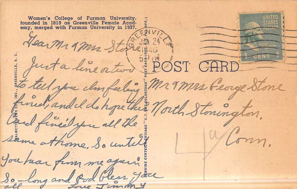 Greenville South Carolina Womens College Furman Antique Postcard K46298