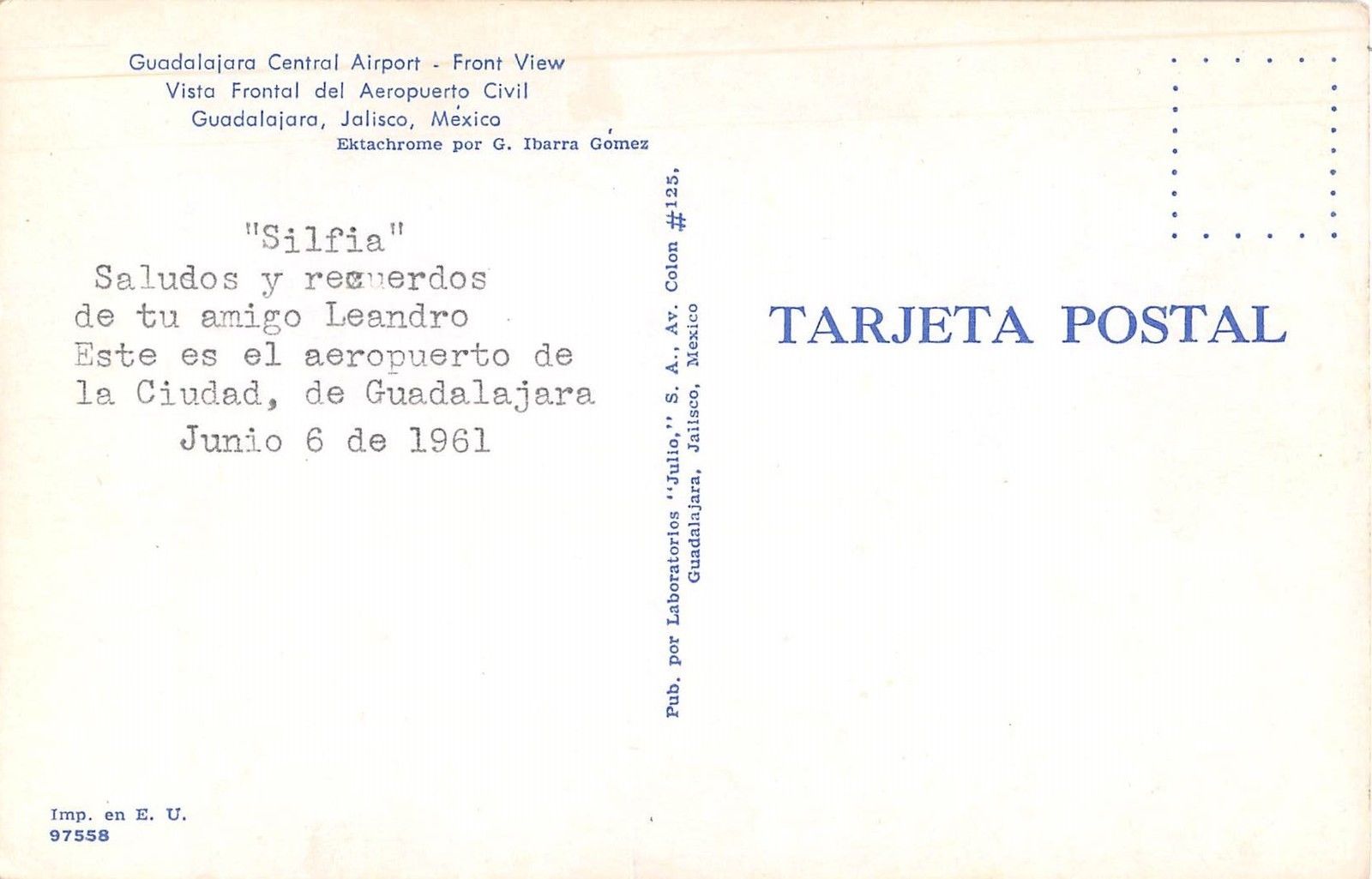Guadalajara Mexico Guadalajara Central Airport Vintage Postcard (J12673) Good Condition.