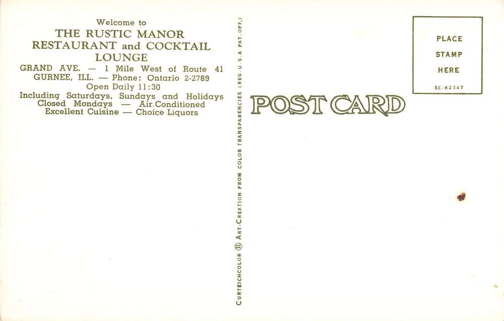 Gurnee Illinois Rustic Manor Restaurant Interior Vintage Postcard K39217
