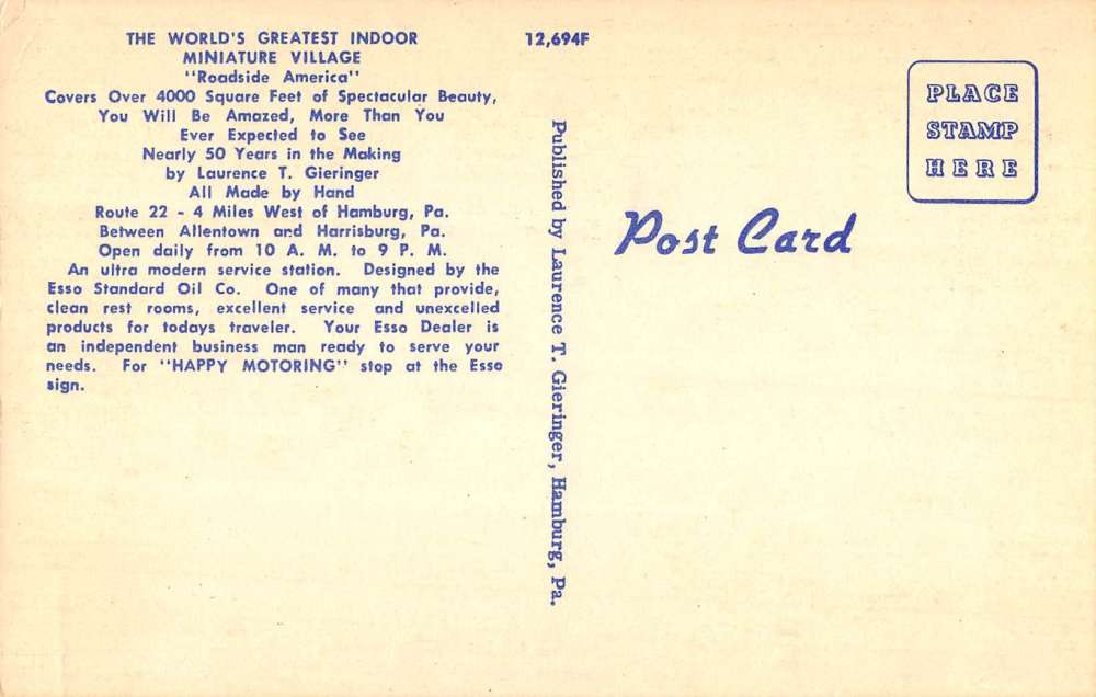 Hamburg Pennsylvania Miniature Village Esso Station Antique Postcard K105705