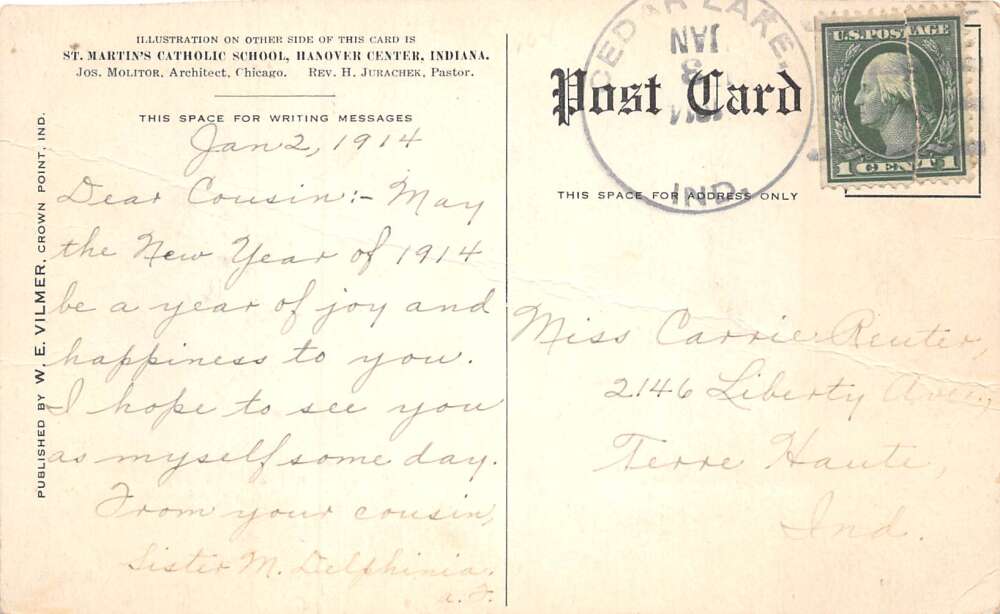 Hanover Center Indiana St. Martin’s Catholic School, Divided Back, PC U12232