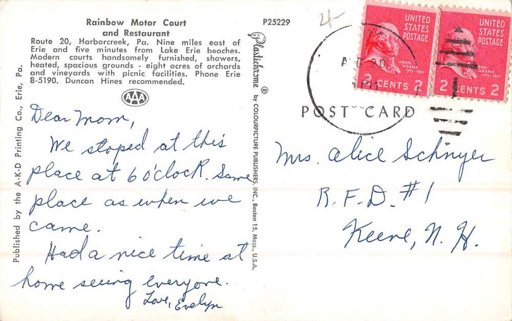 Harborcreek Pennsylvania Rainbow Motor Court Multiview Vintage Postcard K72193