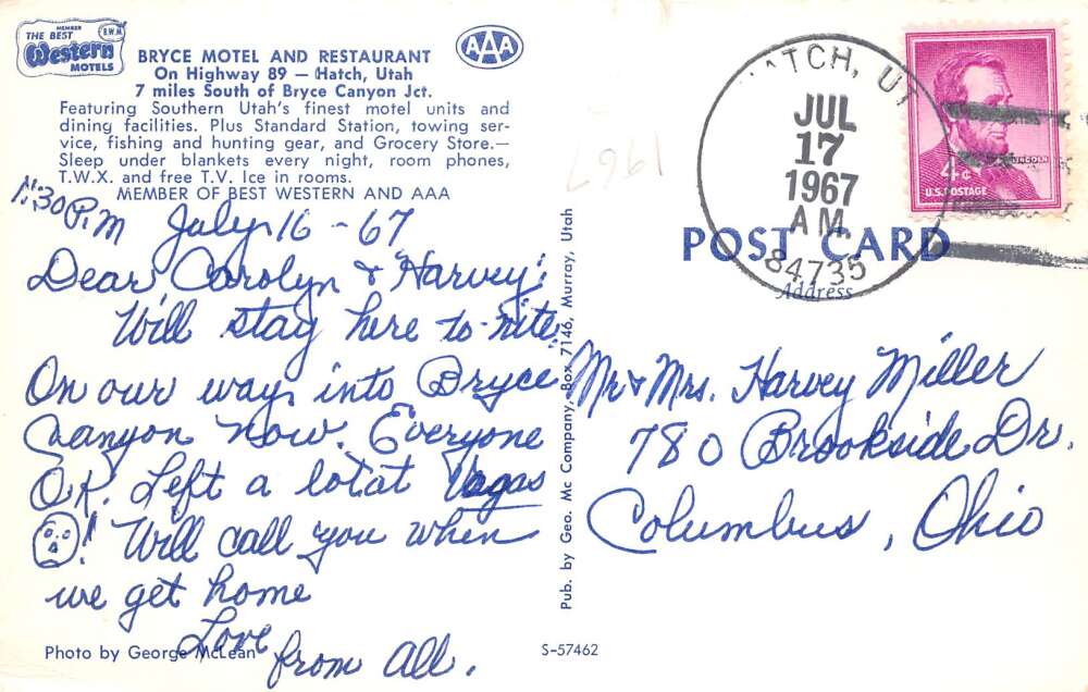 Hatch Utah Bryce Motel and Restaurant Room Interior Vintage Postcard AA111316