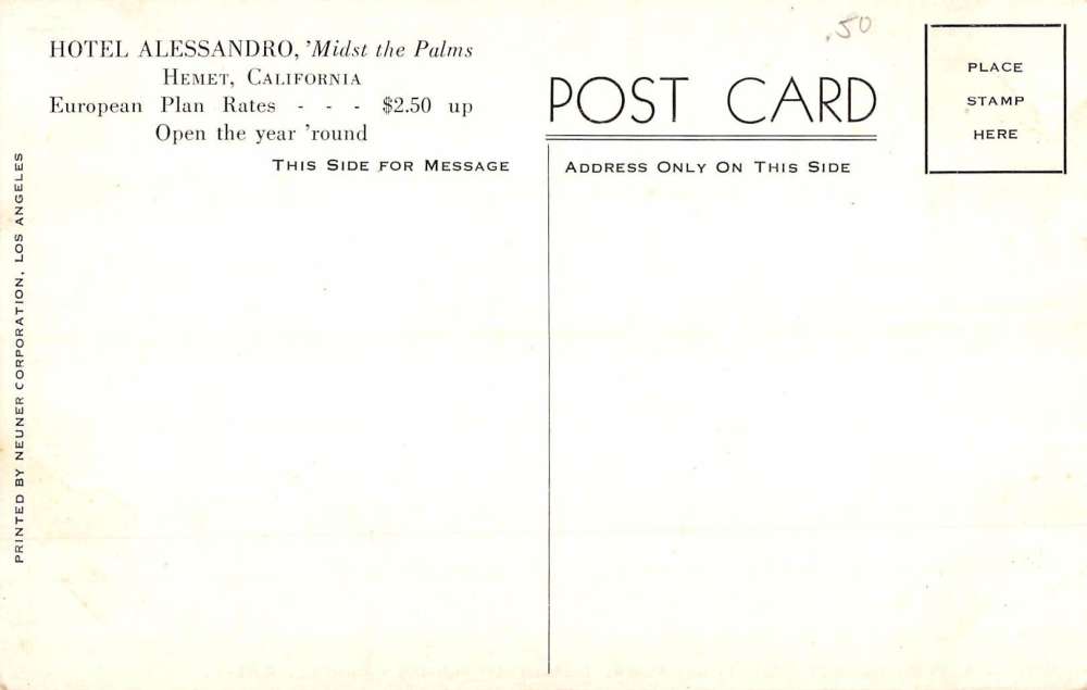 Hemet California Hotel Alessandro Street View Antique Postcard K89369