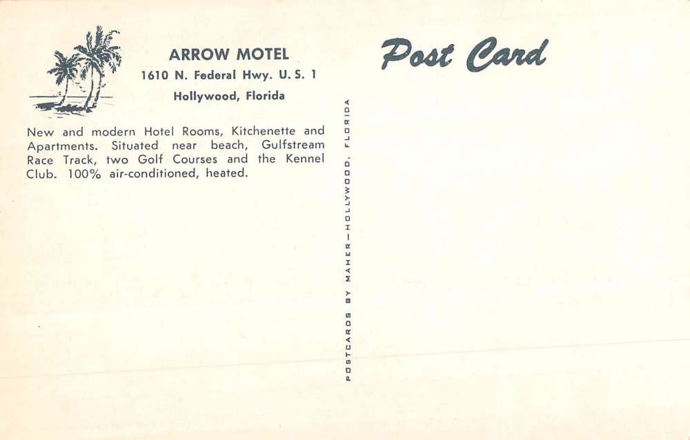 Hollywood Florida Arrow Motel Street View Vintage Postcard K61438