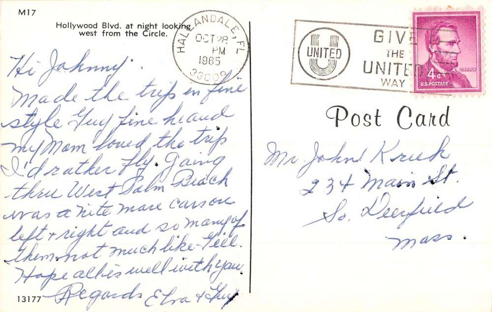 Hollywood Florida Street Scene At Night Vintage Postcard K98173
