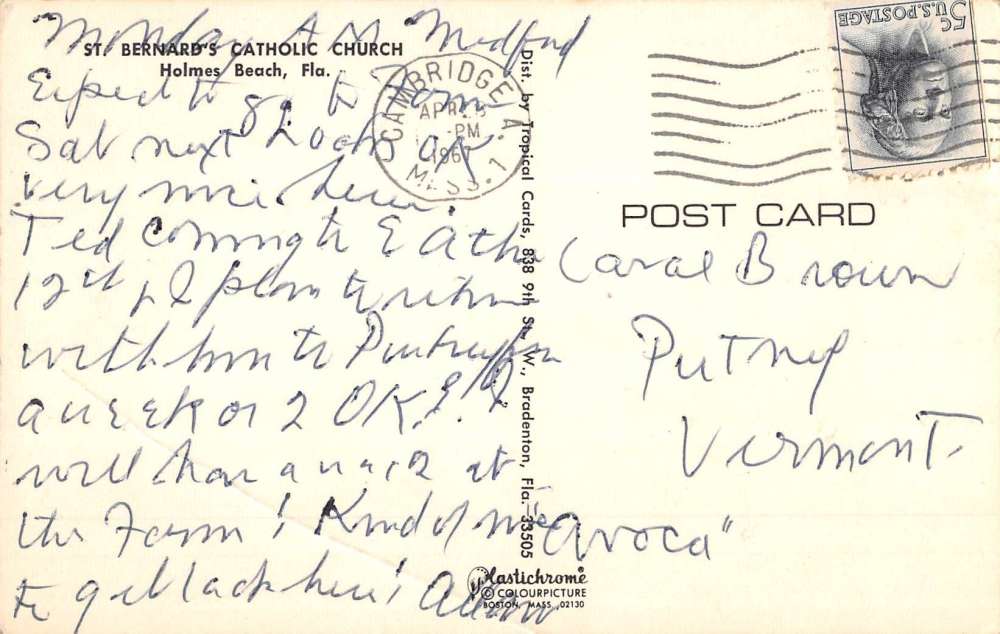 Holmes Beach Florida St Bernards Catholic Church Vintage Postcard K64617