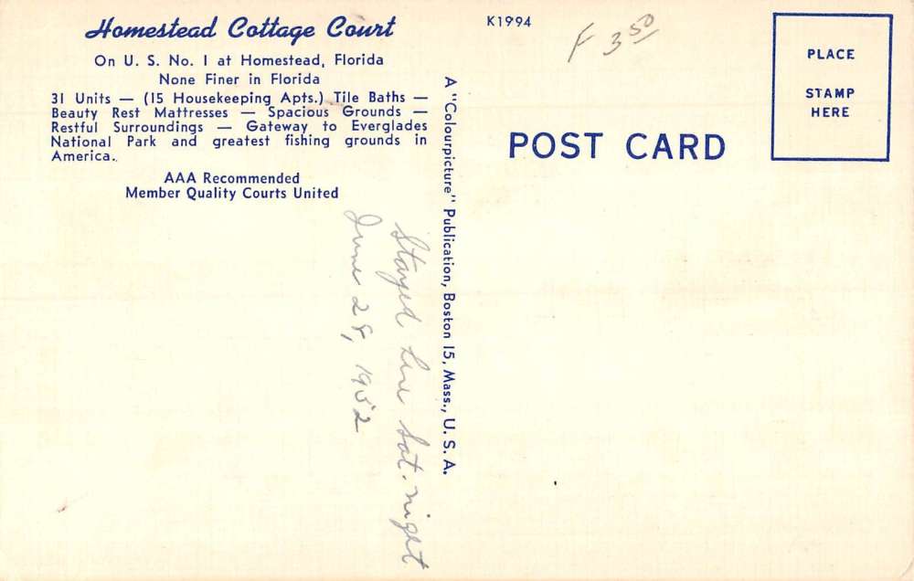 Homestead Florida Cottage Court Multiview Antique Postcard K104361
