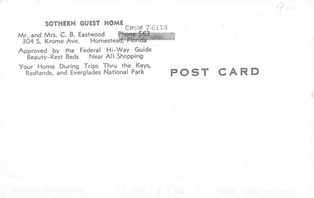 Homestead Florida Sothern Guest Home Street View Antique Postcard K95421