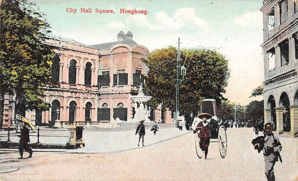 Hong Kong China City Hall Square Rickshaw Antique Postcard J78836