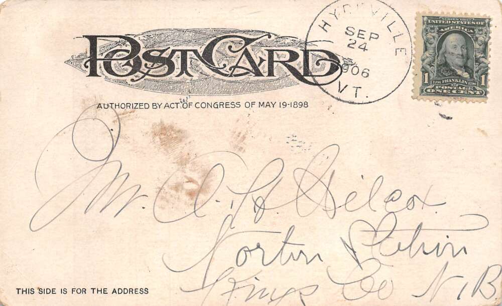 Hydeville Vermont First Baptist Church and Paster Vintage Postcard AA78885