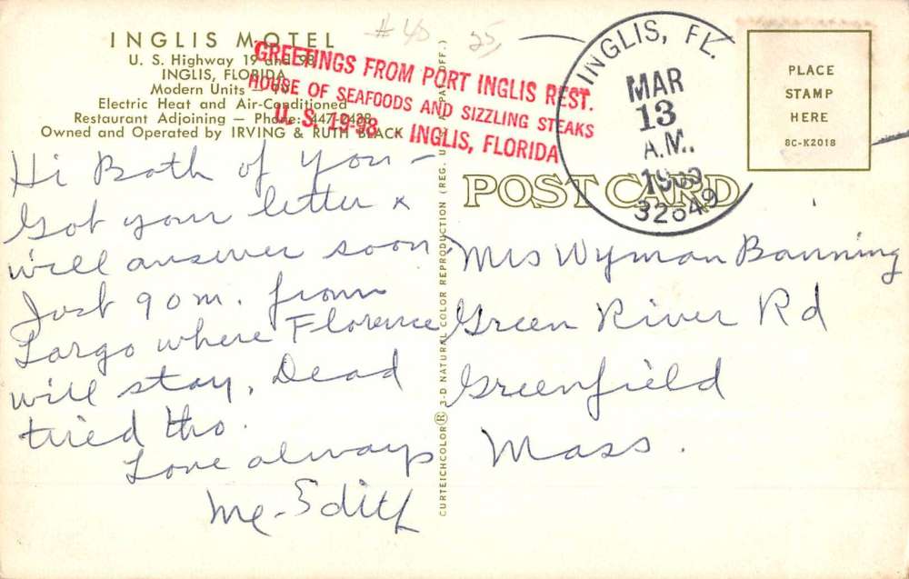 Inglis Florida Motel Street View Vintage Postcard K62227