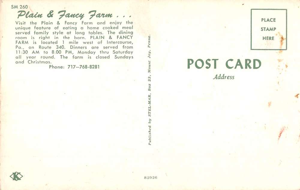 Intercourse Pennsylvania Plain And Fancy Farm Interior Vintage Postcard K55089