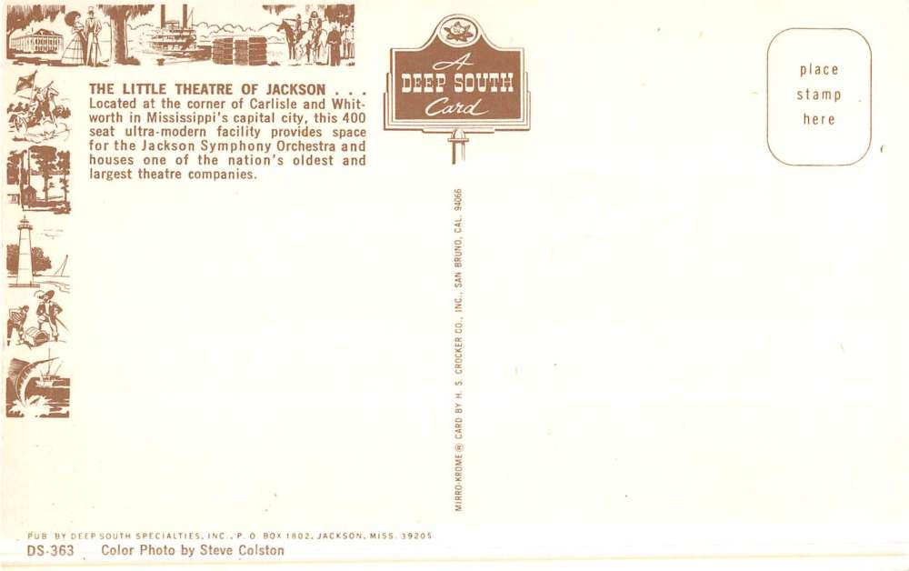 Jackson Mississippi Little Theatre Street View Vintage Postcard K47110