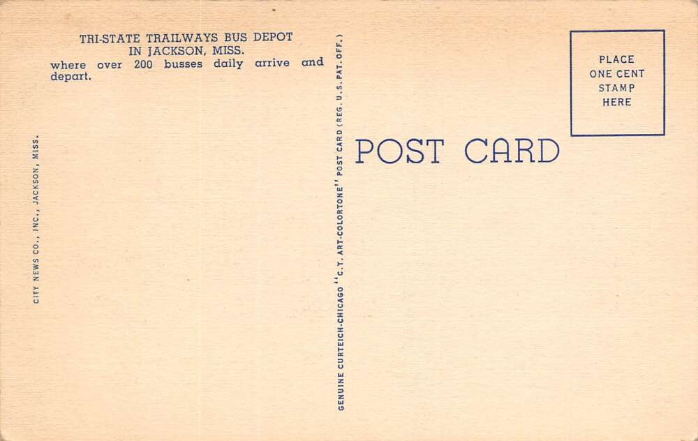 Jackson Mississippi Tri-State Trailways Bus Depot, Color Linen, PC U27086