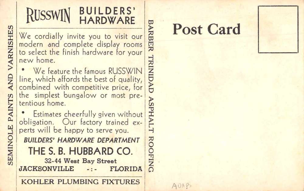 Jacksonville Florida Hubbard Co Builders Hardware Display Real Photo PC AA4746