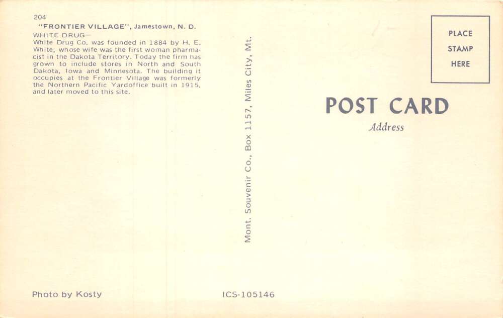 Jamestown North Dakota Frontier Village White Drug Store Postcard AA72629